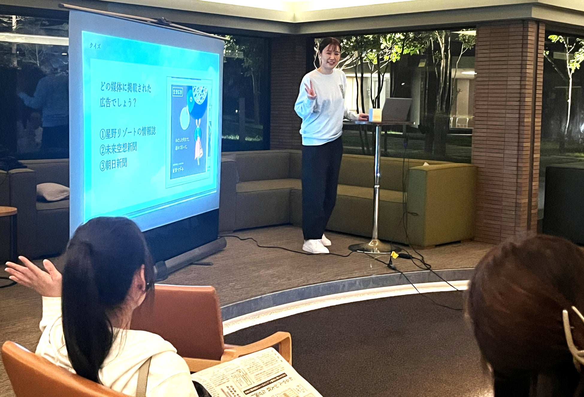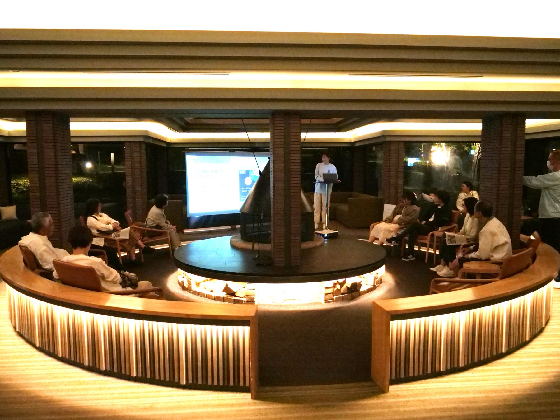 リゾナーレトマムの宿泊者が、雲海の種類や雲海テラスの魅力を学ぶ「雲海講座」に、「未来空想新聞2042」の編集者も登壇し、新聞発行に込めた想いや、一般の方や企業・自治体へと広がる参加の動きを紹介しました。また、翌朝の雲海テラスの壮大な絶景を楽しむ体験に向けて、「17年後の未来。あなたが訪れたい雲海テラスは、どんな場所ですか?」と問いかけ、参加者に未来の空想を促しました。