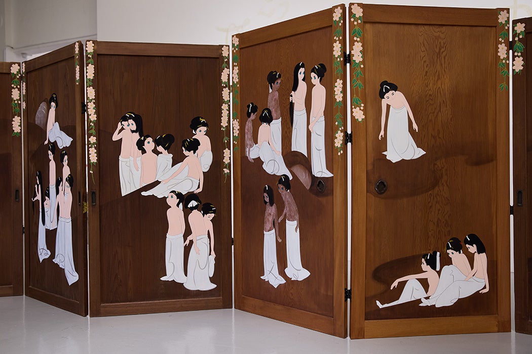 墨⽥区内に残る歴史的建造物を訪ね、現代のアーティストが独⾃の視点で作品を展⽰します。琳派など様々な日本の美を継承しつつ、現代性を融合した新しい美人画を板や貝殻等に描く山口藍などが、すみだの場の魅力を顕在化させます。