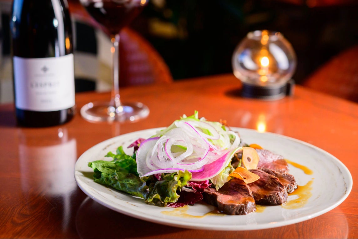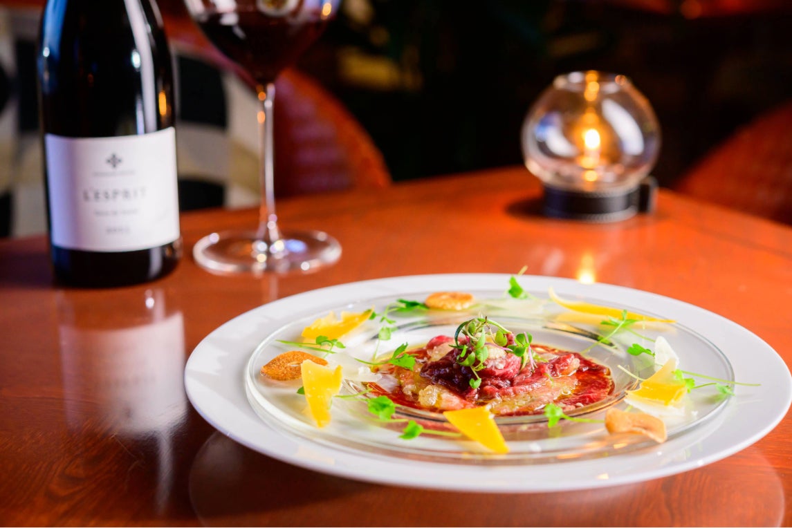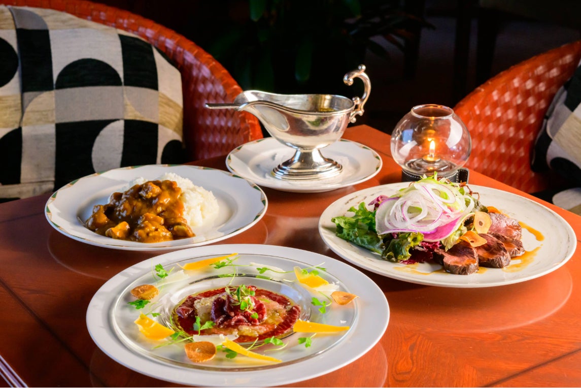 ホテル最上階のトップラウンジ「ポールスター」では、カジュアルにお愉しみいただける鯨料理もご用意しております。芳醇なスパイスが鯨肉の旨みを引き立てる「鯨タンカレー」、希少部位を堪能する「ナガス鯨 尾の身とおばいけのカルパッチョ」、香り高く仕上げた「ナガス鯨 赤身のローストサラダ仕立て」と、3種の趣向を凝らしたメニューをラインアップ。会席料理とはまた異なるスタイルで、鯨の奥深い魅力をご堪能いただけます。