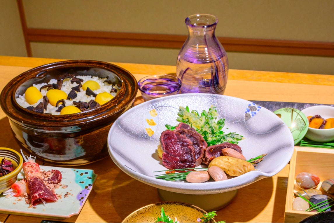 下関直送の鯨を主役に、北前船ゆかりの寄港地の恵みを味わう会席料理。