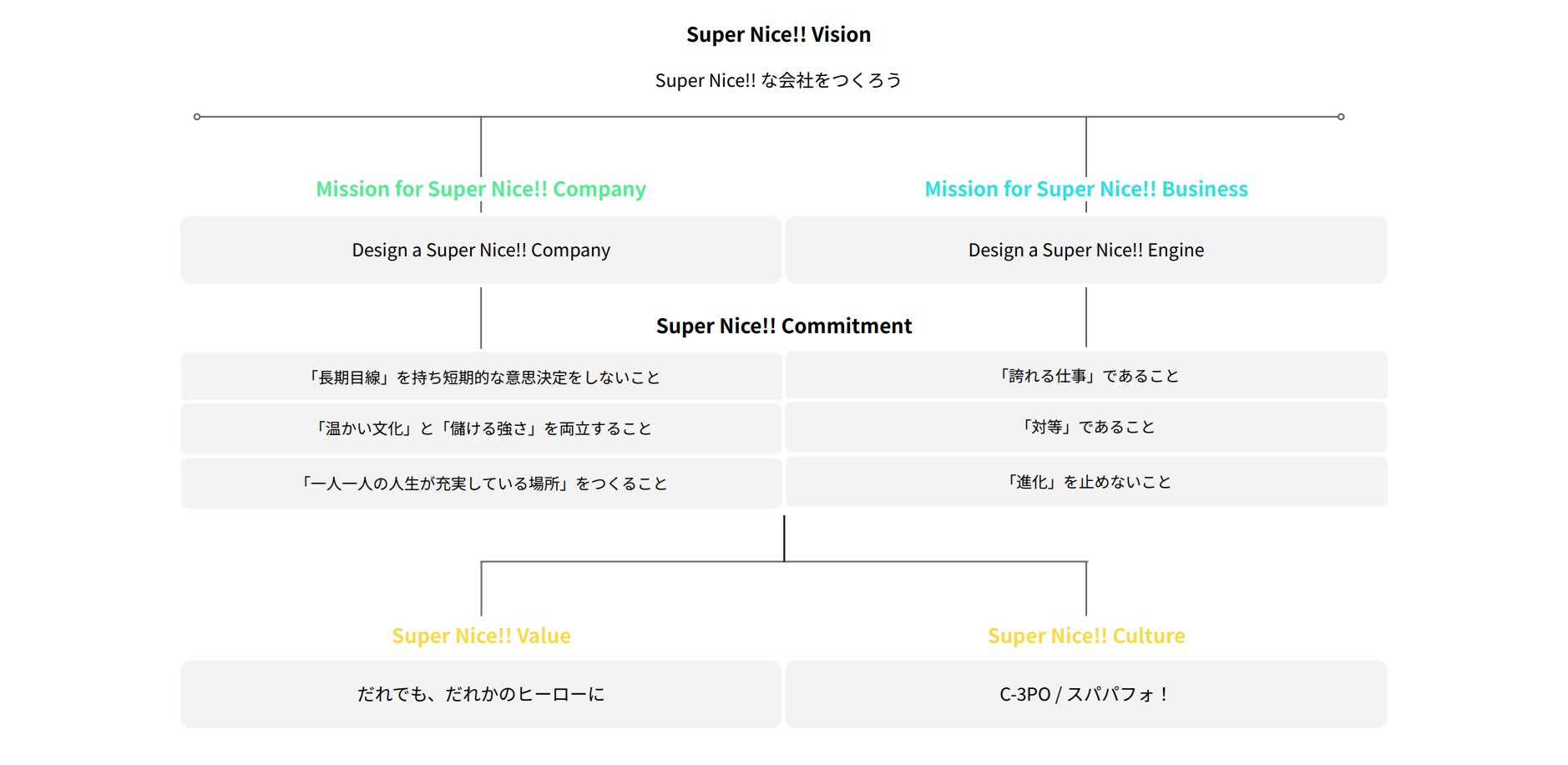 Super Nice!! な会社をつくろう 売上や規模の大小にとらわれず、関わるすべての人から「いい会社だね」と言ってもらえる存在になること |