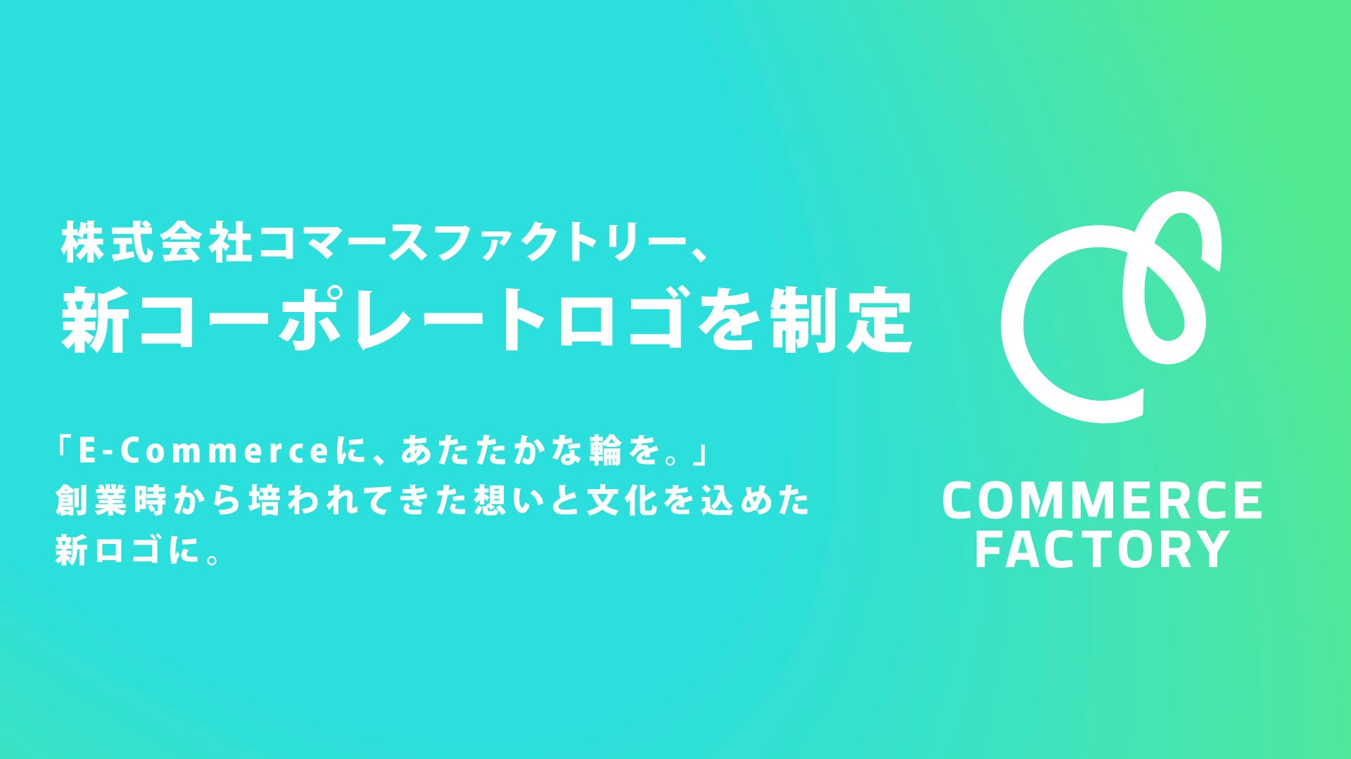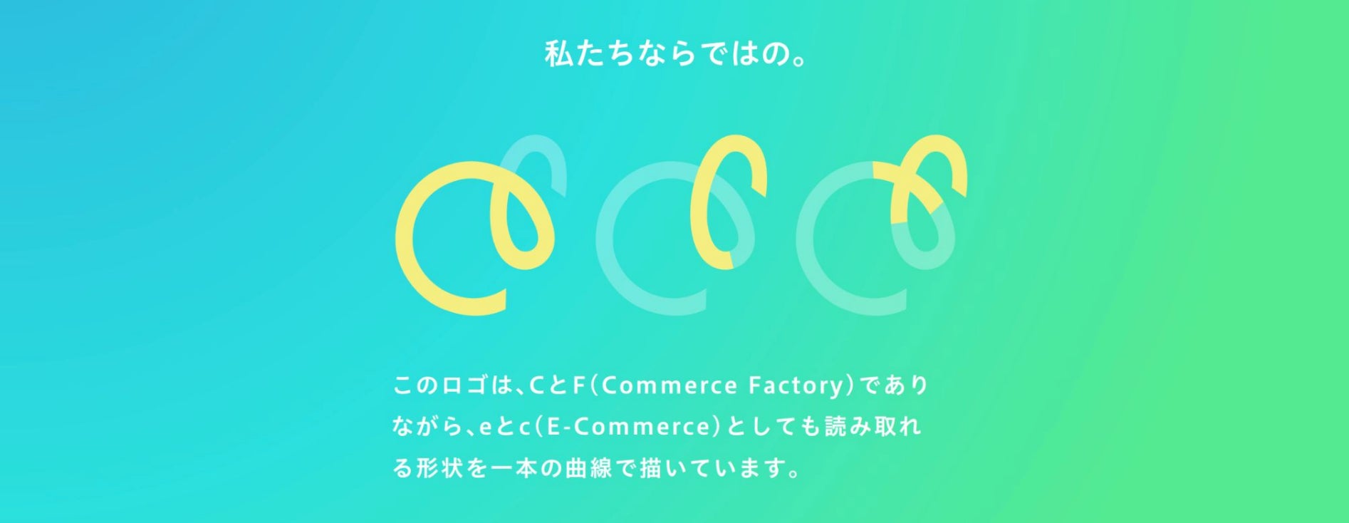 新しいロゴは、当社「Commerce Factory」の頭文字「C」「F」をベースにしながら、同時に「e」「c」(E-Commerce)としても読み取れる一本の曲線で構成しています。