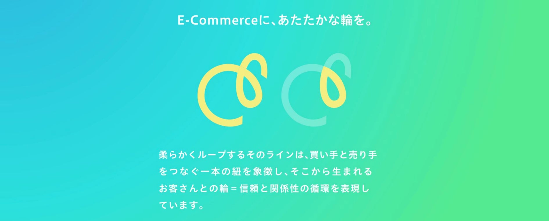 やわらかくつながるラインは「買い手と売り手を結ぶ一本の紐」を象徴し、そこから生まれる信頼と関係性の循環=あたたかな輪を表現しています。