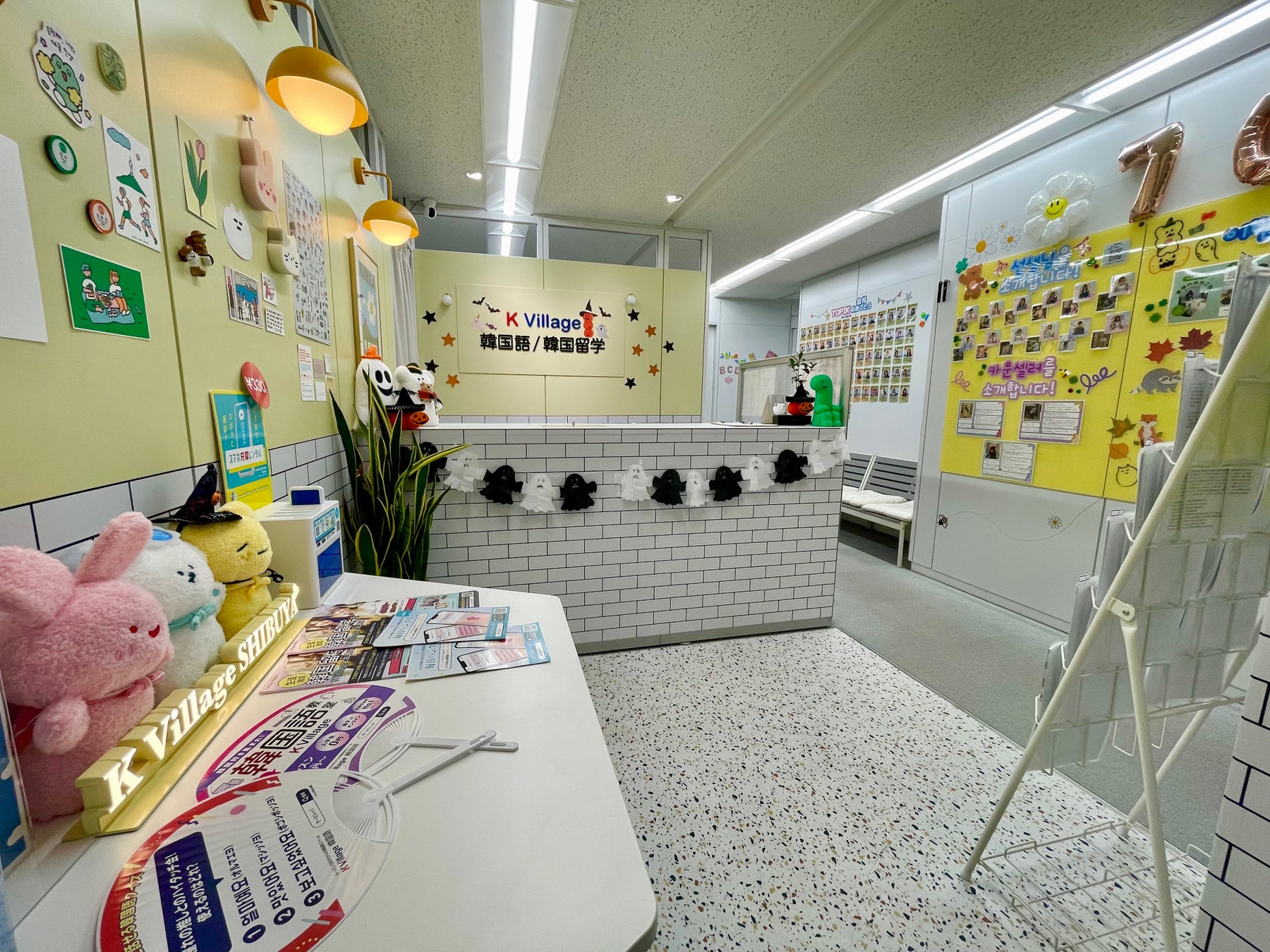 校舎の空間づくりにもこだわり、まるで韓国カフェのような明るく可愛らしい雰囲気の中で、リラックスして楽しく韓国語を学べる環境を整えています。