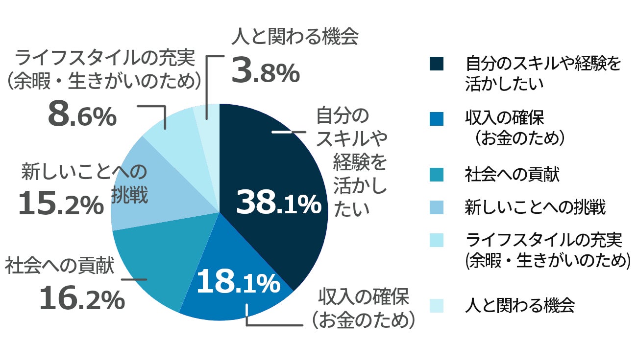 最多回答は「専門知識や経験が活かせること」、次いで「人から感謝されること」や「新しいチャレンジができること」でした。プロフェッショナルとして“誰かの役に立つ”ことが、シニアの働くモチベーションを高めている点が際立っています。