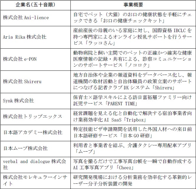 【別紙】<かながわ・スタートアップ・アクセラレーション・プログラム支援企業一覧>