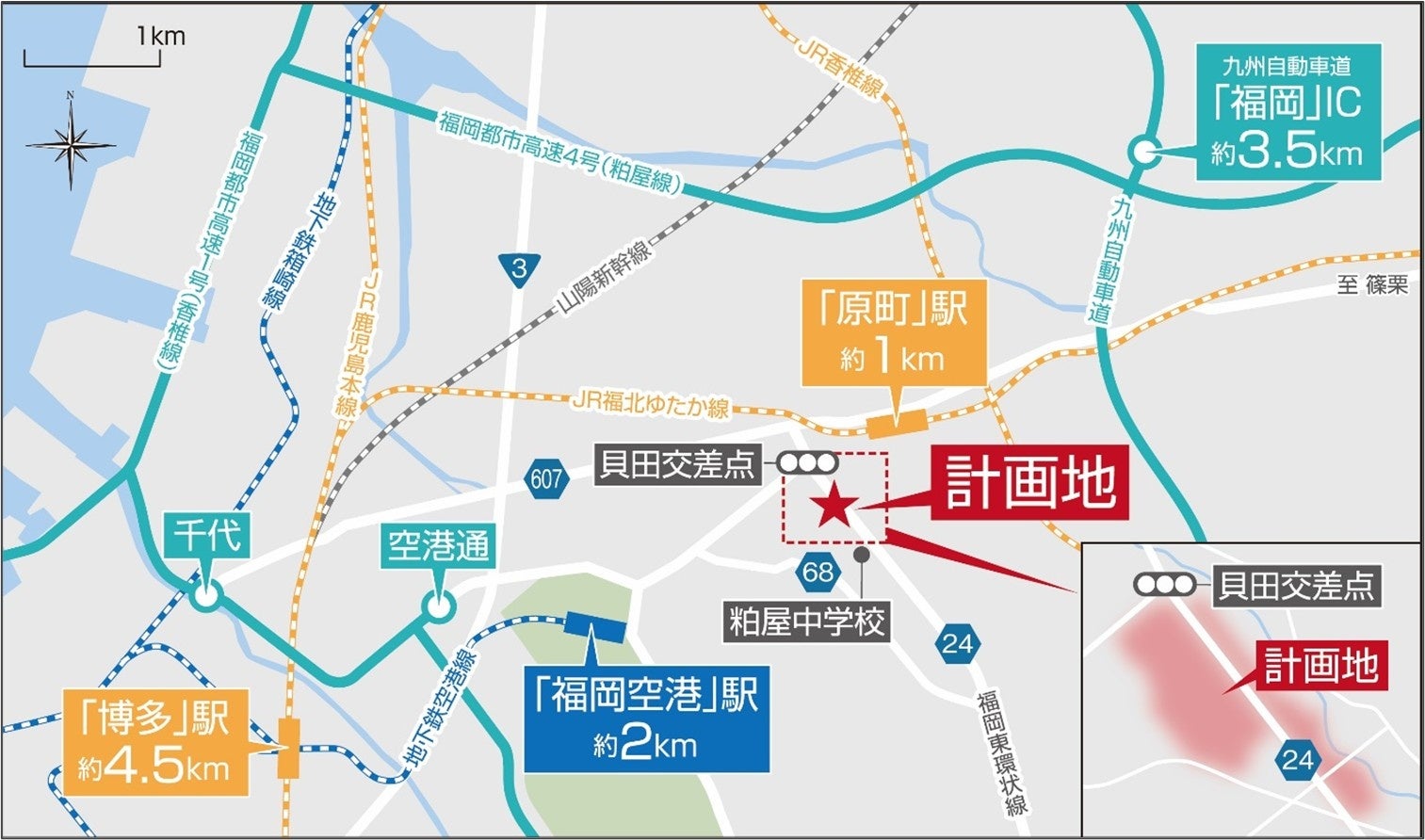 東急不動産株式会社(本社:東京都渋谷区、代表取締役:星野 浩明、以下「当社」)は、西松建設株式会社(本社:東京都港区、代表取締役:細川 雅一)、九州旅客鉄道株式会社(本社:福岡市博多区、代表取締役:古宮 洋二)と構成する共同企業体(以下「当共同企業体」)として、粕屋町仲原東土地区画整理事業準備委員会及び志免町別府土地区画整理事業準備委員会(以下「両準備委員会」という)との間で、業務代行予定者基本協定を締結し、(仮称)粕屋町仲原東・志免町別府土地区画整理事業(以下「本事業」)の業務代行予定者に選定されたことをお知らせいたします。