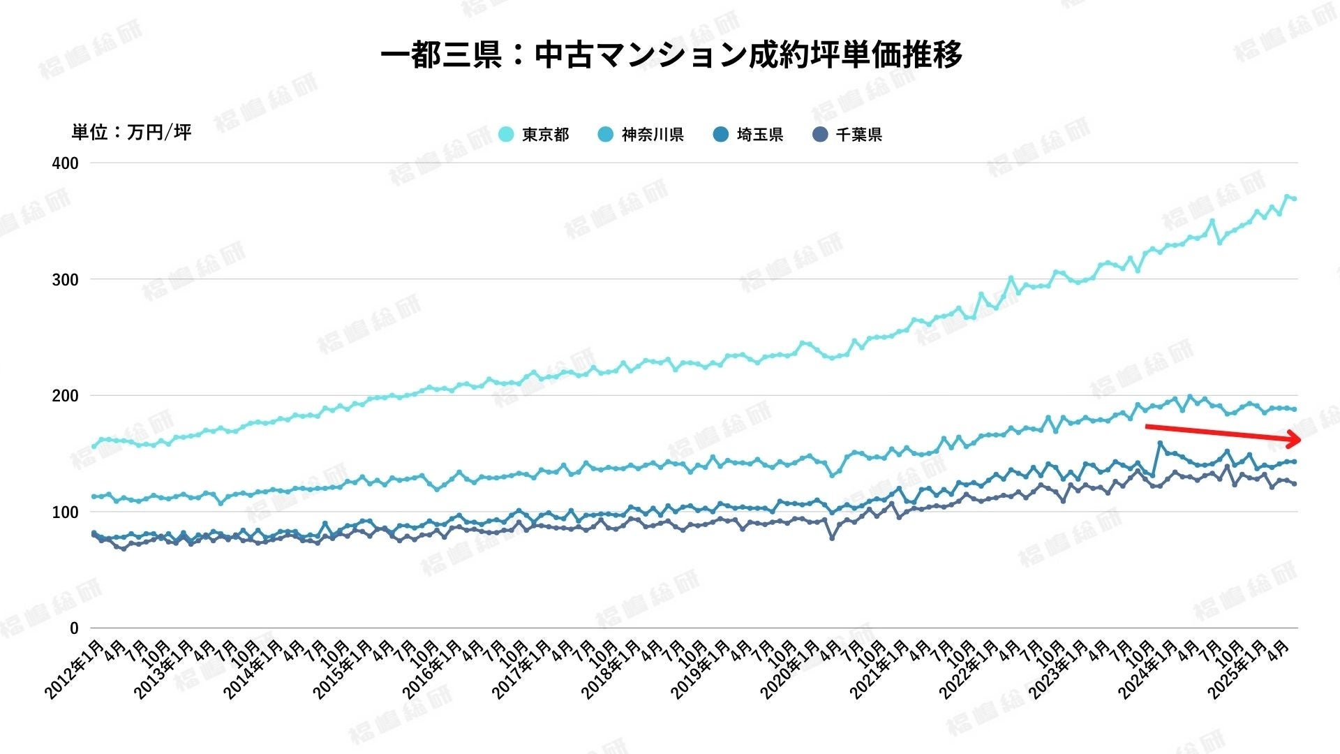 首都圏中古マンション市場における価格動向は単純な下落局面ではなく、「築浅の高騰による代替需要の拡大」「金利上昇前の駆け込み購入」という二つの要素によって説明できるといえます。東京都はその中でも特異な需要構造によって価格高騰が続き、神奈川・千葉・埼玉は平均坪単価こそ一時的に低下しているものの、実態としてはむしろ堅調さを保っているのです。今後、金利動向がさらに注目を集める中で、この代替需要の継続性や、築古物件に対する評価の高まりがどこまで進むのかが、市場分析において大きな焦点になるでしょう。