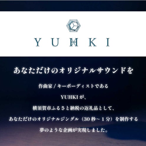 作曲家/キーボーディストであるYUHKIが、横須賀市ふるさと納税の返礼品として、あなただけのオリジナルジングル(30秒~1分)を制作する、夢のような企画が実現しました。