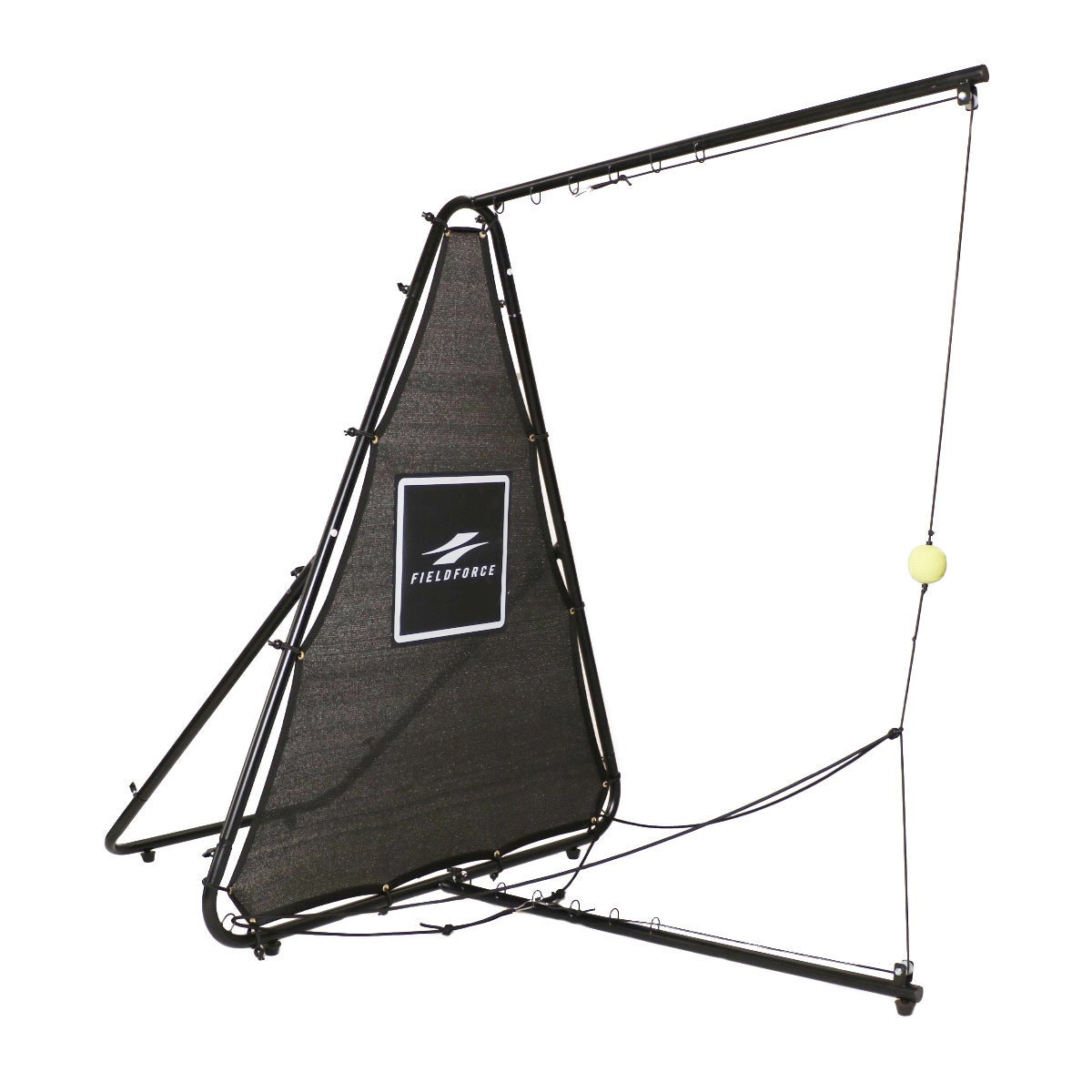 上下のゴムで、ボールを宙に浮かせる形にすることで、高さ調節も自在に。あとは三角形の特徴的なネットの中央にある、フィールドフォースのロゴをめがけて打ち込んでください。軟式ボールが標準で付属しますが、オプションで硬式ボールも用意されています。多量のボールも、ネットも不要。省スペース、省コスト、1人で練習に打ち込めます。
