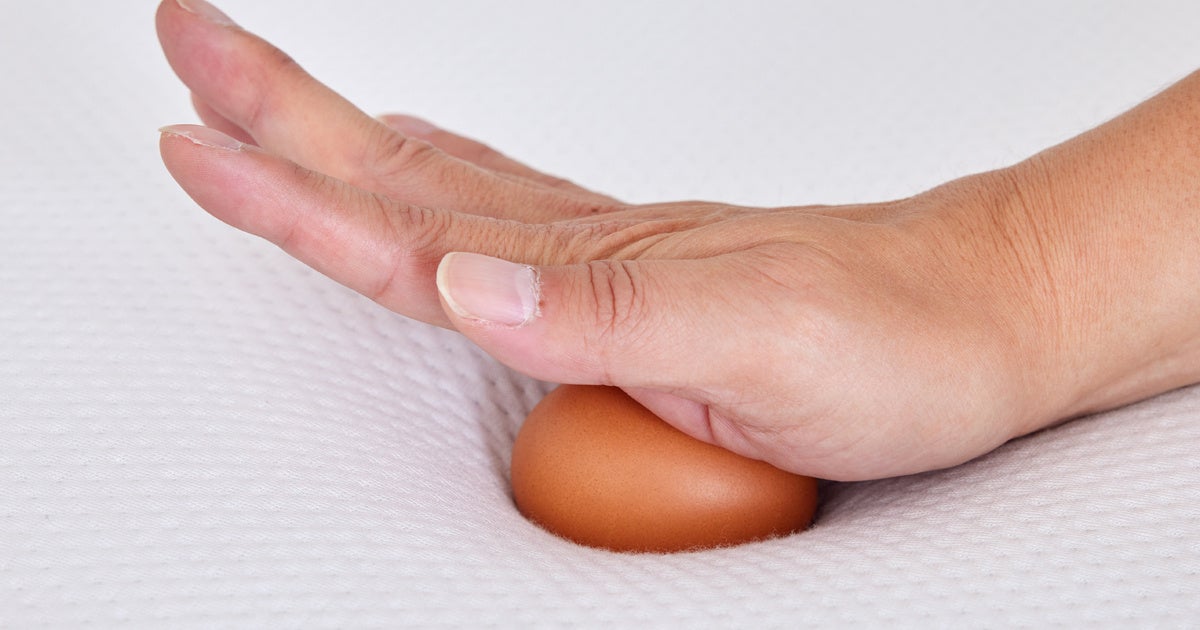 生卵をつぶしても割れない程、高い圧力分散性を実現。また、他社のマットレスと比較しても圧力が一点にかかりすぎていないという結果となりました。これにより、肩や腰へかかる負担を減らし、朝まで綺麗な寝姿勢をサポートします。