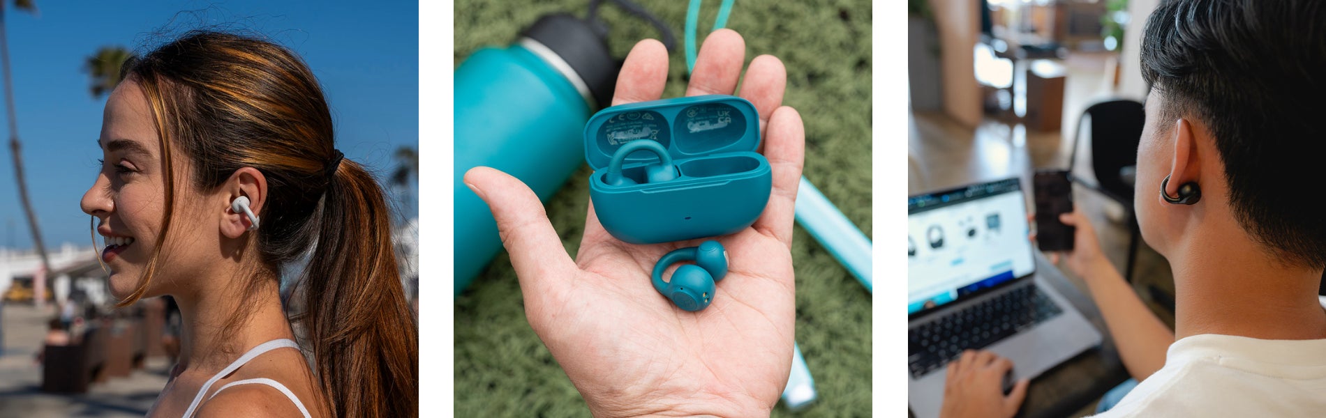 耳をふさがないイヤーカフ型デザインで、周囲の状況を把握しながら音楽などを楽しむことができます。長時間の装着でも快適性を損なわず、安心・安全に使用することができることから、男女問わず、幅広い世代から注目を集めています。