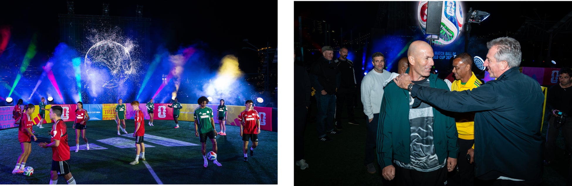 本イベントは、アディダスがワールドカップへ向けたブランドストーリーを本格的に始動するキックオフの場として開催されたもので、世界中から350名を超えるメディアやクリエイターが集結しました。会場では、ジネディーヌ・ジダン氏やカフー氏らレジェンドの登場により大いに盛り上がりを見せ、来年の大会に向けた数々のアクティベーションが展開されました。さらに、公式試合球「TRIONDA(トリオンダ)」の世界初披露によって会場の熱気は最高潮に達し、FIFAワールドカップ2026への期待感を大きく押し上げました。