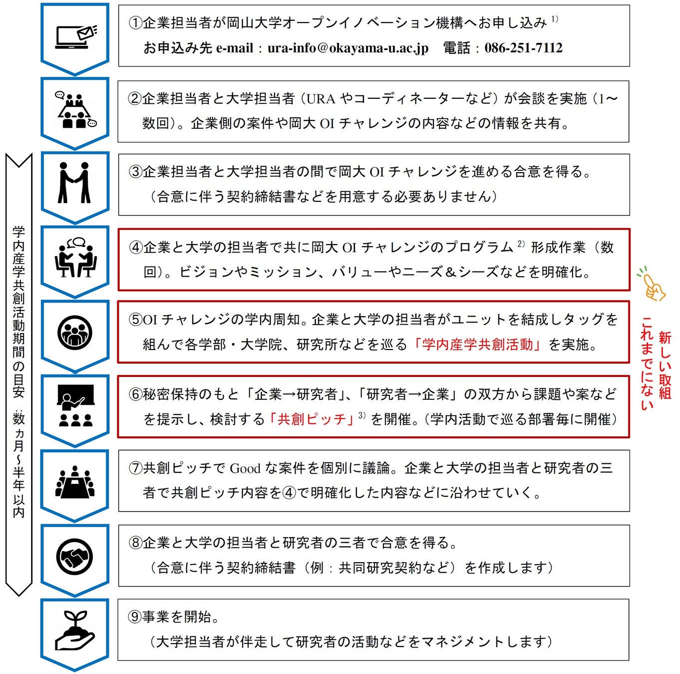 ・「岡大OIチャレンジ」に関する営業・売り込みのご連絡を頂くことがございますが、現在、共創パートナーの募集を実施しております。個別の取り組みに関することや営業の案内には対応しかねますので、何卒よろしくお願い申し上げます。