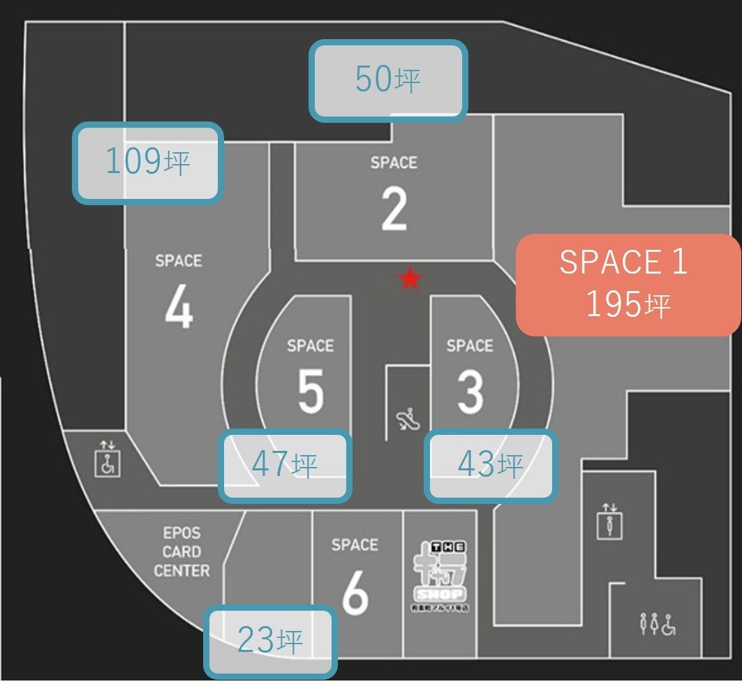 フロアの目玉は新たに設けられるトータル約200坪の新区画<SPACE1>。ホール型スペースで、圧倒的没入感を提供