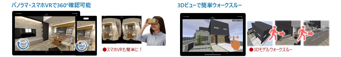 WEB上で設計プランを共有、自社ホームページへの掲載や3Dビューのウォークスルー・パノラマ、スマホVRも可能。プランの確認や建材・設備のコーディネートなどをお施主様にも気軽にWEB上で行っていただくことができます。