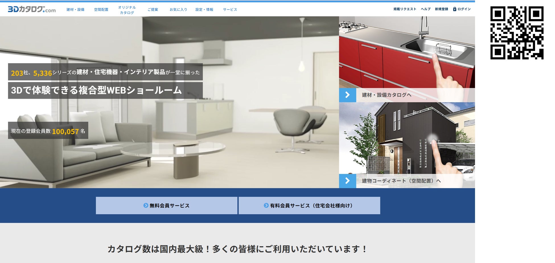 現在メーカー203社・5,345シリーズ・10万点以上(※3)の建材・住宅機器・インテリア製品の3Dデータを一堂に集め、WEB上で建材や設備の組み合わせなどがシミュレーションできる国内最大級のカタログプラットフォームとして、住宅会社様・設計者様・施工業者様をはじめとする多くの建築業界の方々、及び家づくりを検討されている一般の方にもご活用いただいております。