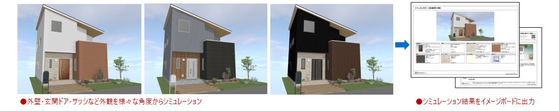 各建材・設備の情報やシミュレーション結果、建物全体の配置結果が出力でき、打ち合わせなどに活用可能です。