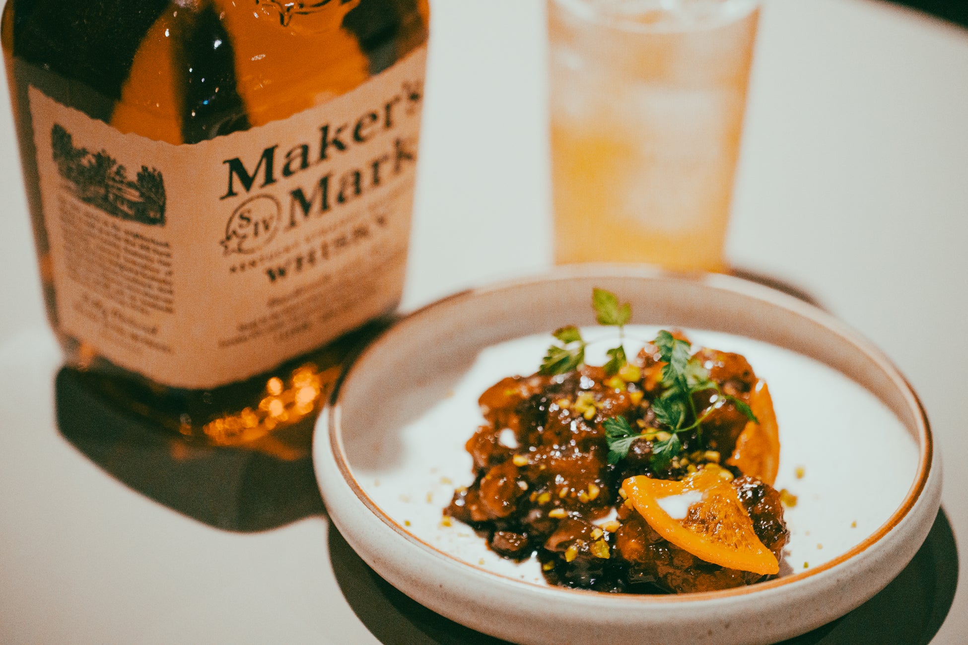 レトロアメリカンをテーマにしたBAR SHIMIZUが選ぶバーボン・ウィスキーとTOSA名物「オレンジチキン」のペアリングセット。オレンジの風味とキャラメリゼされたチキンの甘みをバーボンソーダで爽やかに流し込むも良し、ロックで甘みを楽しむのも良しな大人のセットです。