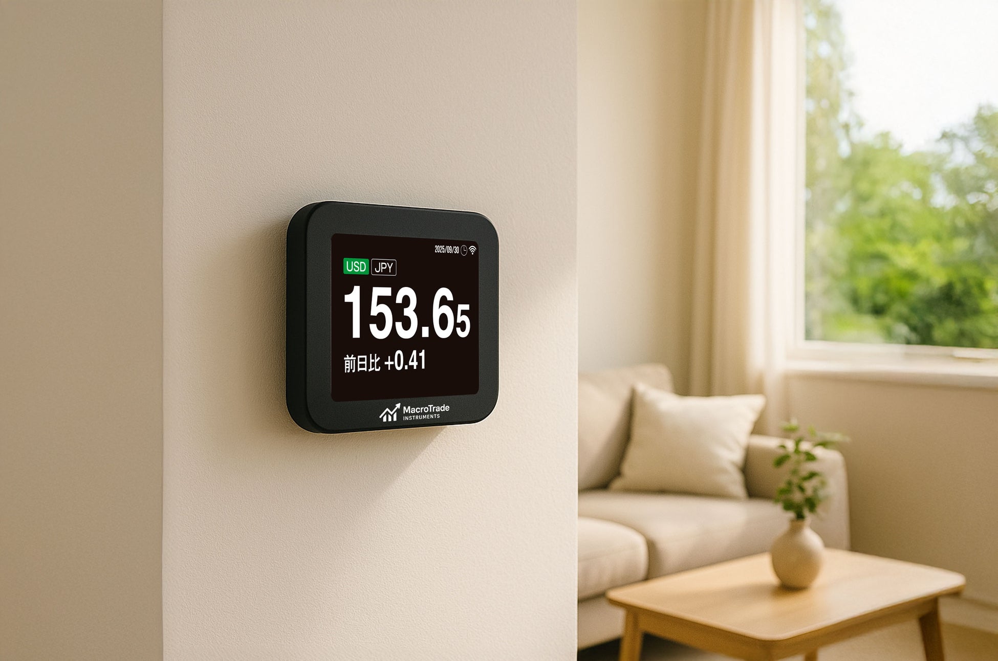 主要通貨のレートや前日比をリアルタイムで表示し、居室やワークスペースに常時設置する使い方を想定する。