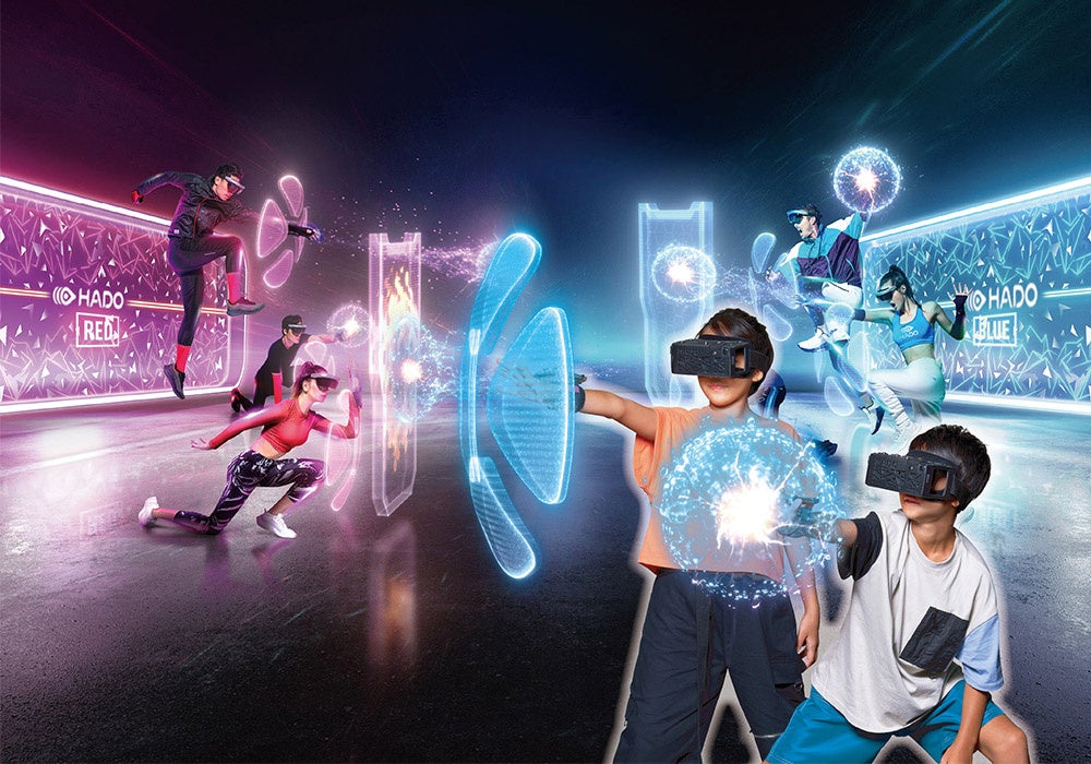 HADOは、AR(拡張現実)技術を活用した次世代型スポーツです。頭にヘッドセット、腕にセンサーを装着し、現実空間で「エナジーボール」を放ち合ったり「シールド」で防御したりしながら対戦します。ケーブルやコントローラーが不要なため、全身を使った直感的なアクションを楽しめるのが特徴です。現在、世界39ヵ国以上で親しまれ、次世代スポーツとして注目を集めています。子どもでもわかりやすいシンプルな操作で誰でも気軽に楽しめます。