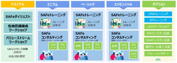 こうした課題を解決する目的で、当社はお客様の状況に合わせてトレーニングとコンサルティングを柔軟に組み合わせたパッケージの提供を開始しました。このパッケージにより、お客様はSAFe®導入に必要な支援を一括でうけられるため、従来のような煩雑な社内手続きを省き、導入プロセスをスムーズに進めることができます。