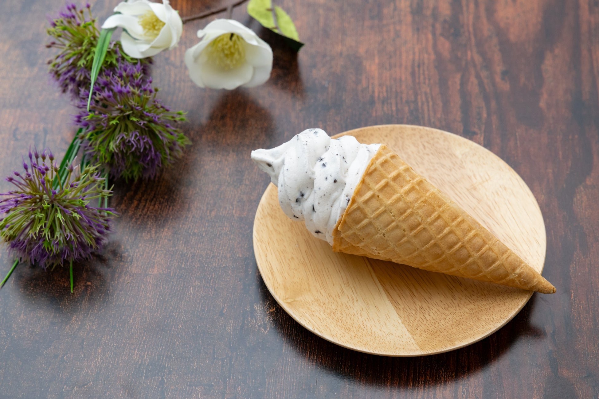 ココアクッキーの食感や風味を十分にお楽しみいただくため、ココアクッキーをたっぷり使用しています。ミルクバニラアイスだけでなく、香ばしいコーンとの相性も抜群です。