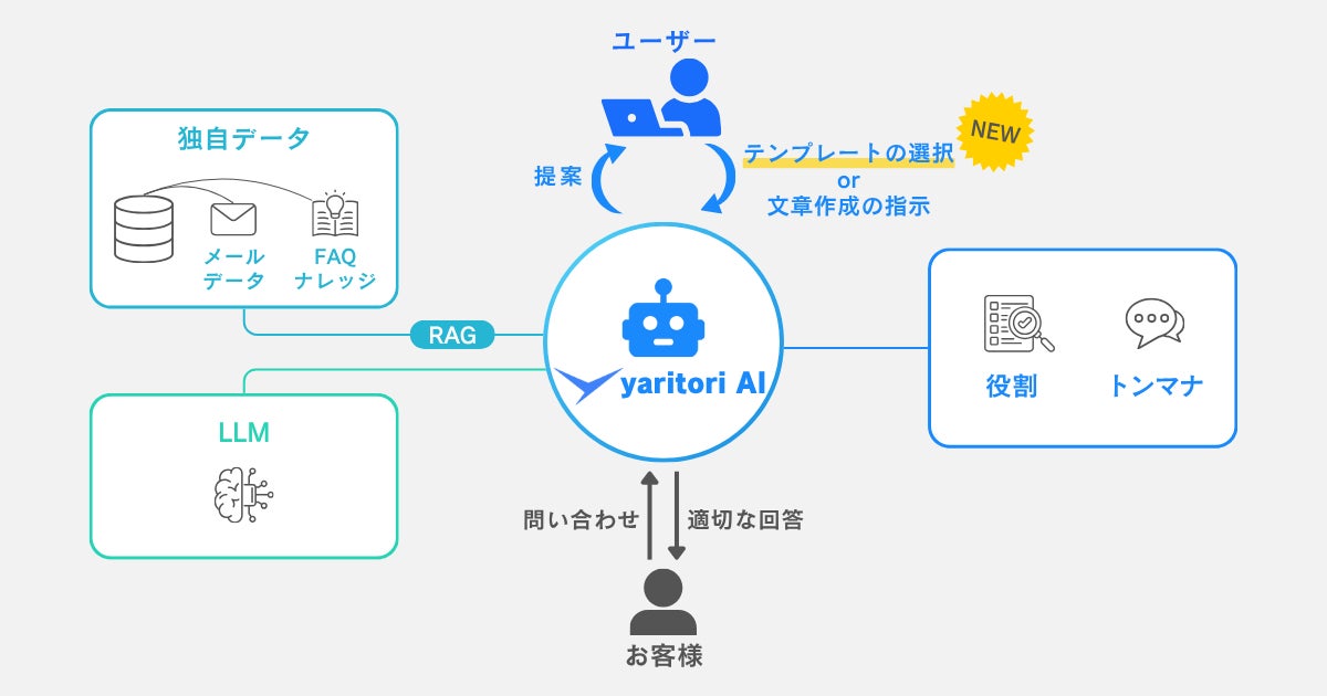 そこで当社は、2025年6月に過去のメール履歴を参照し、適切な回答文を瞬時に生成することができるAIエージェント『yaritori AI』をリリースしました。