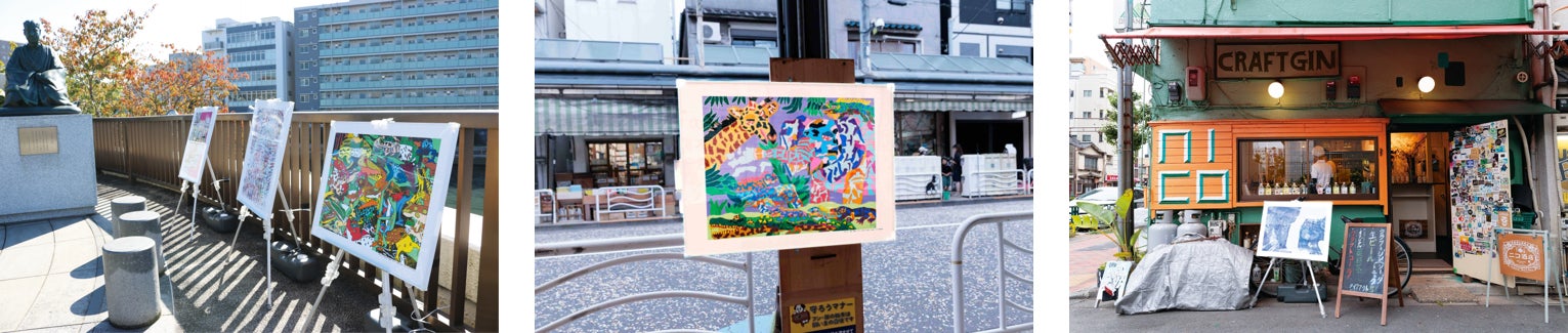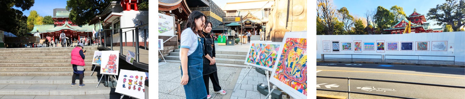 富岡八幡宮や深川不動堂など歴史ある場所を中心に、老舗商店の軒先などに作品を展示。まちの記憶とアートが響き合う空間が広がります。
