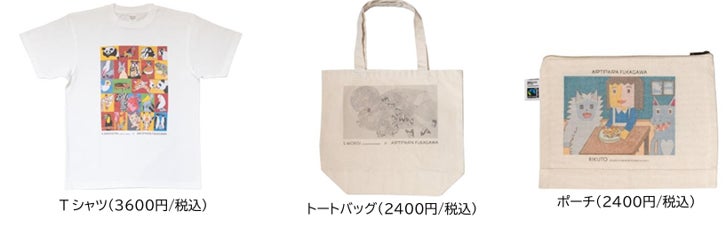 アートパラ深川とアートを身近に感じていただくアイテムとして、アートパラ深川大賞2024全国公募展の受賞作品をデザインした公式グッズ(Tシャツ、バッグ、ポーチ、缶バッヂ)を芸術祭の一部会場やオンラインで販売いたします。商品の売り上げの一部は各アーティストに還元されます。