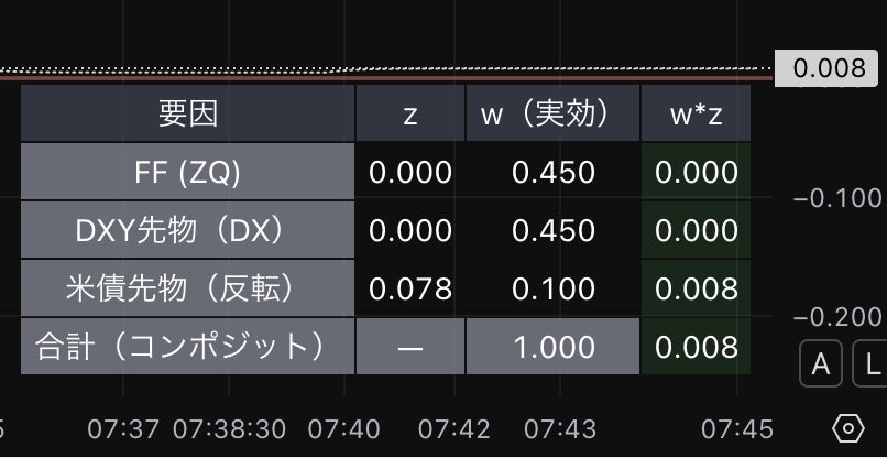 金利差・実質金利・FF先物/OIS・DXYをzスコアで合成。秒〜日次のモード切替で「方向」を一目で可視化。