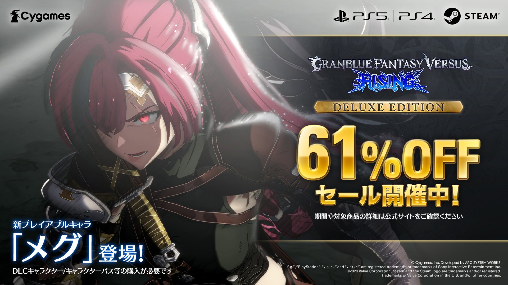 現在、『Granblue Fantasy Versus: Rising デラックスエディション』を61%OFFでご購入いただけるセールが開催中です。この機会にぜひお買い求めください。