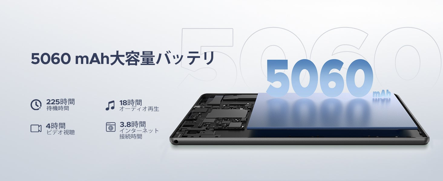 軽量設計(509g)と大容量バッテリー(5060mAh)を両立。