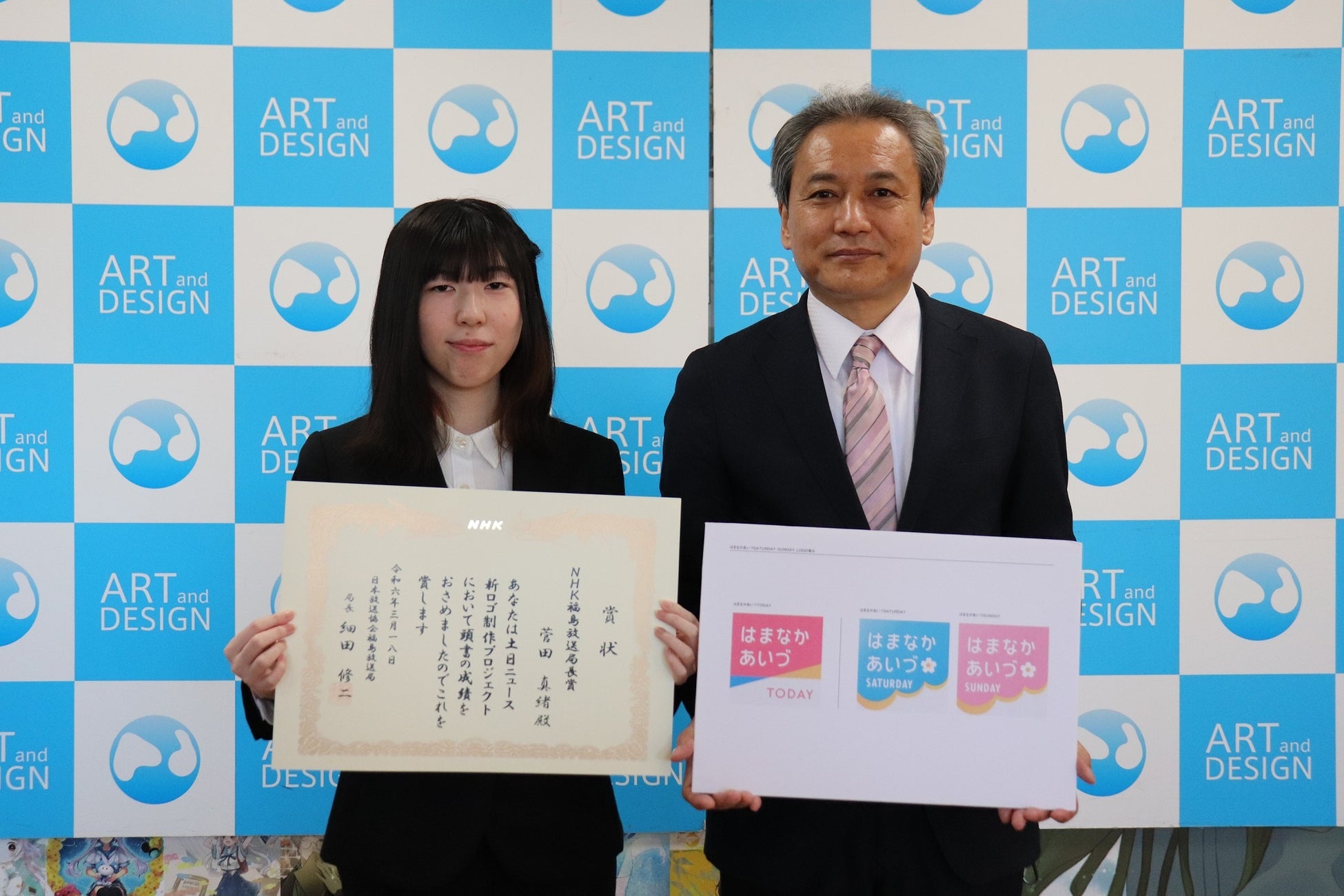 NHK福島放送局からの依頼により始動したこのプロジェクトでは、グラフィックデザイン科の学生たちが、新番組のイメージを形にするためのコンペティションに参加しました。多数のクリエイティブな提案の中から、NHK福島放送局長賞を受賞した菅田さん(グラフィックデザイン科1年生)の作品が番組の公式ロゴのデザインに採用されました。