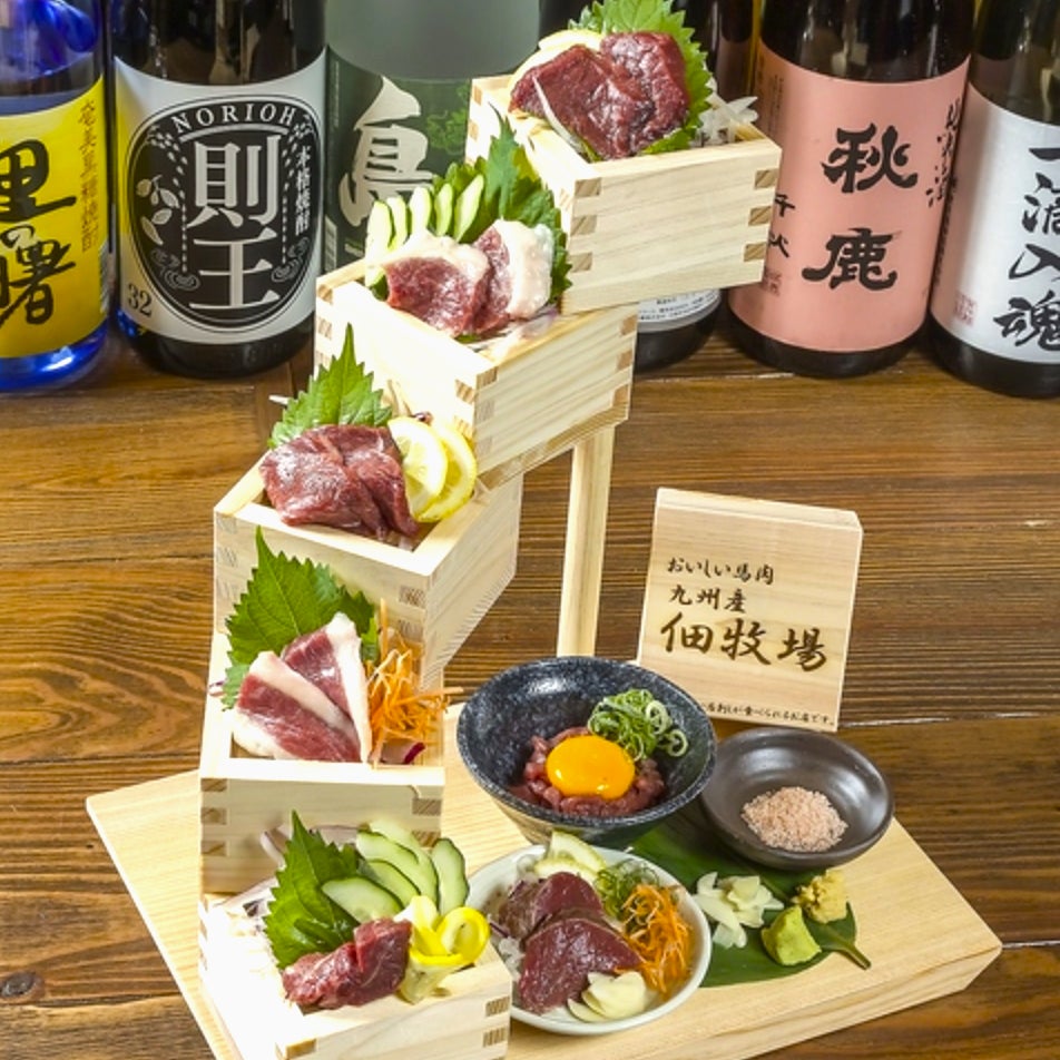 馬肉といえば、馬刺しを思い浮かべる方が多いかと思います。当店では鹿児島・佃牧場から直接仕入れた純国産馬刺しをご用意しております。ぜひ当店で馬肉の美味しさを知ってください。