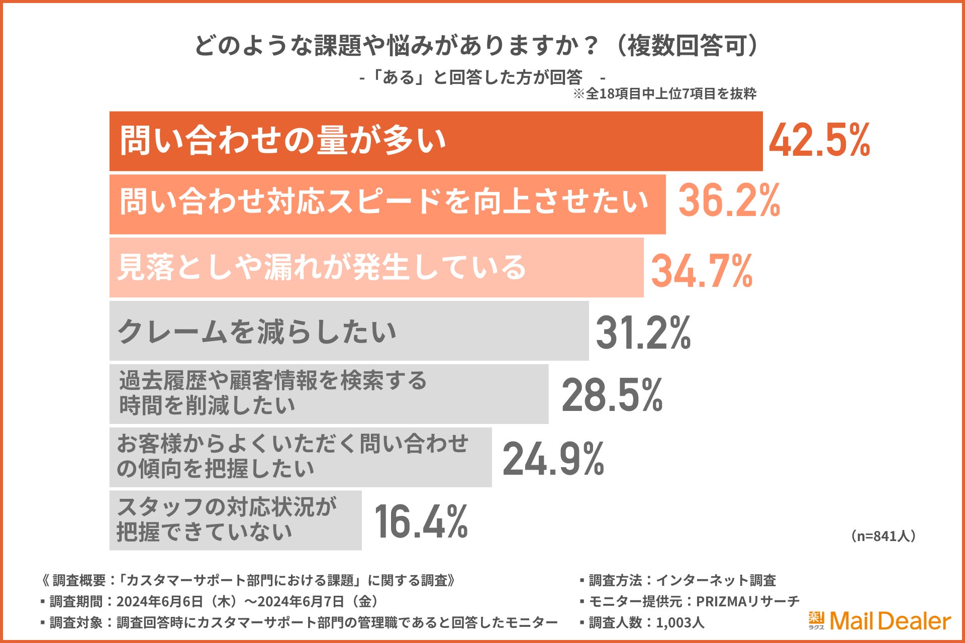 そこで今回、メール共有管理システム『メールディーラー』(https://www.maildealer.jp/)を提供する株式会社ラクスは、カスタマーサポート部門の管理職を対象に、「カスタマーサポート部門における課題」に関する調査を実施しました。