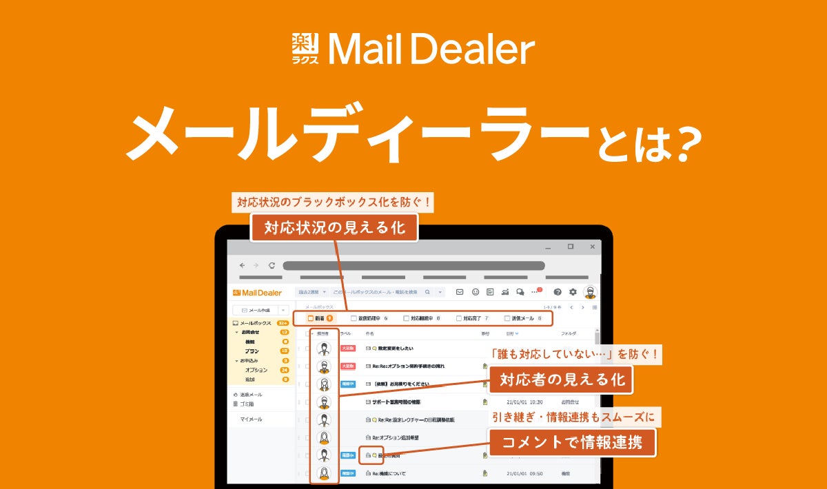 今回、「カスタマーサポート部門における課題」に関する調査を実施した株式会社ラクスは、メール共有管理システム『メールディーラー』(https://www.maildealer.jp/)を提供しています。
